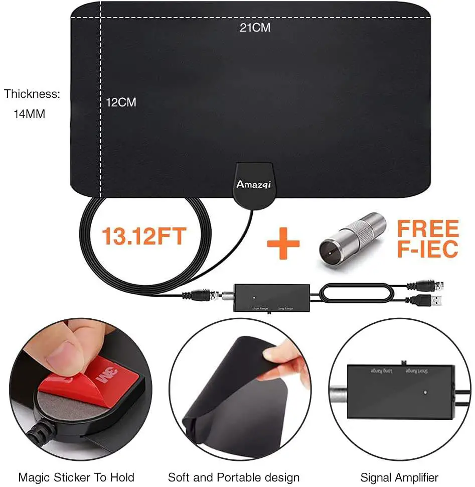 - [TV HD 1080P] – Cette antenne intérieure amplifiée numériquement peut être compatible avec les téléviseurs numériques et plus anciens. Le nouveau matériau souple PC ignifuge respectueux de l’environnement apporte une protection contre l’humidité et la foudre à notre antenne intérieure HDTV.