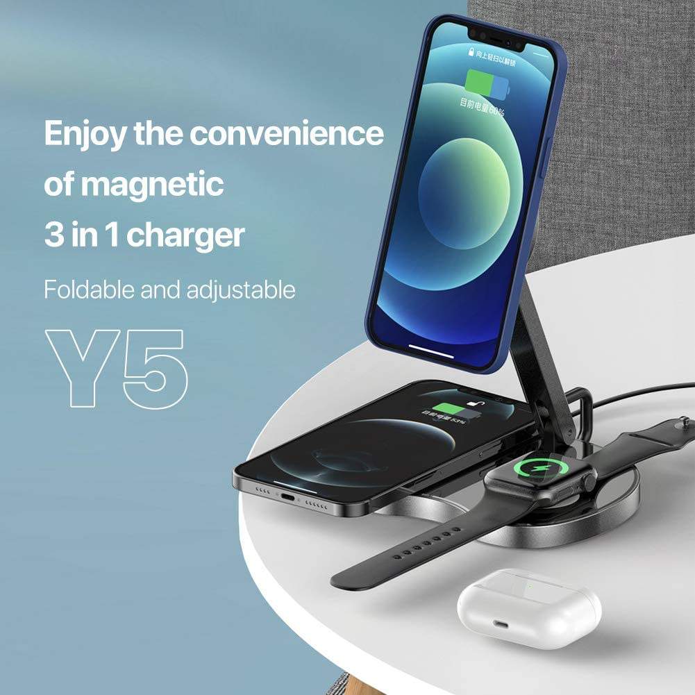 - 【Compatibilité universelle】 Fonctionne avec iPhone 12/12 Pro max/12 Pro/12 Mini, iWatch 5/4/3/2 et Airpods avec étui de chargement sans fil. Il fonctionne également avec n’importe quel téléphone à chargement Qi (nécessite d’appliquer l’anneau métallique inclus).