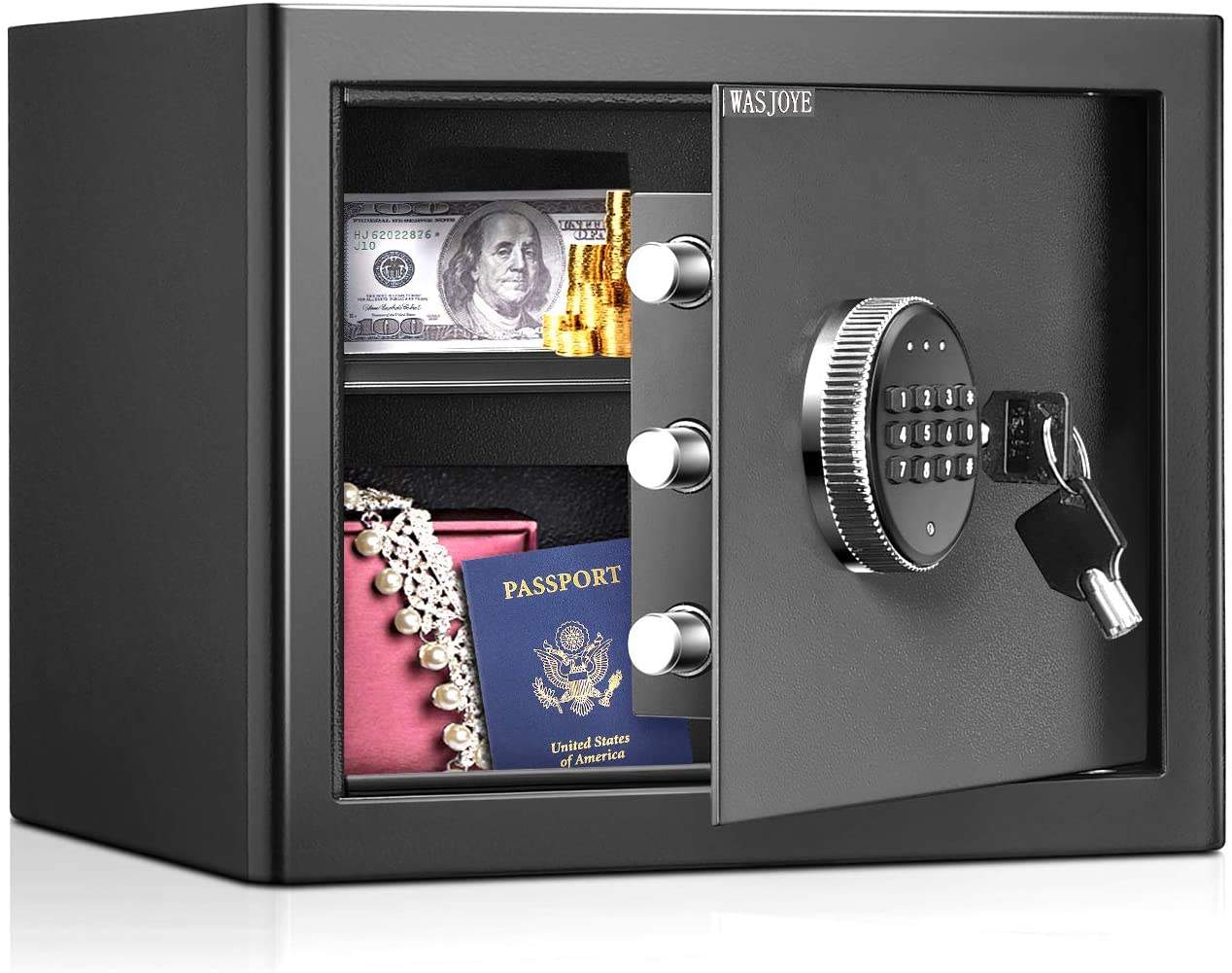 - Haute capacité : utilisation polyvalente avec une cloison détachable, parfaite pour la maison, le bureau, le coffre-fort d’hôtel, les affaires même dans votre automobile, inactive pour stocker vos produits électroniques, objets de valeur personnels, fichiers de lettres de documents importants, bijoux, or, passeport et armes à feu, etc.