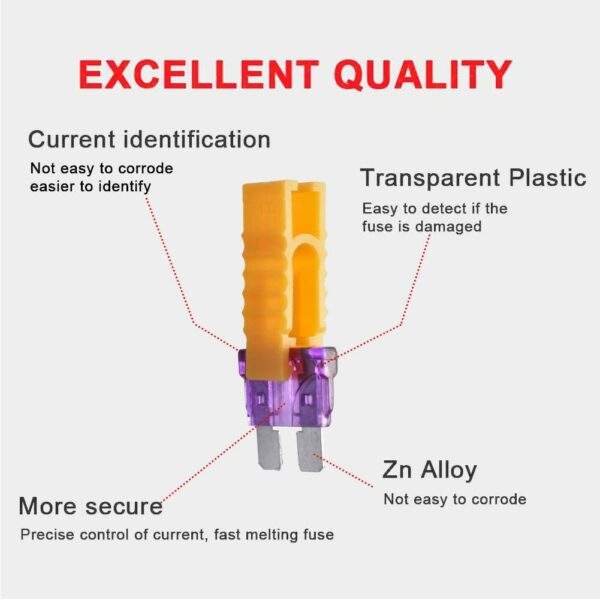 • Couvre 22 fusibles à lame couramment utilisés, 220 pièces Moyen : 2A /3A/5A/ 7.5A/10A/15A/20A/ 25A/ 30A/ 35A/ 40A (20 pièces de chaque modèle), 264 pièces standard : 2A/3A/5A/ 7.5A/10A/15A/20A/25A/30A/35A/40A (24 pièces de chaque modèle)