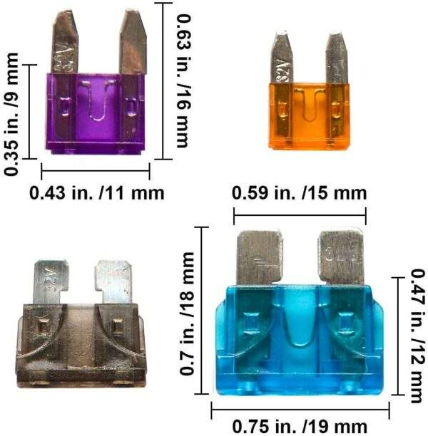 • Ces fusibles assortis sont spécialement conçus pour les voitures, les camions, les VUS, les VTT, les UTV, les camping-cars, les motos, les flottes, les voitures de golf, les bateaux, les motoneiges et la plupart des applications CC générales, etc., couvrant des composants tels que la radio, la lumière, les virages signaux, etc. Cet ensemble est livré avec 264 fusibles à petite lame et 220 fusibles à lame standard, tous essentiels pour chaque ménage américain qui possède plus d’une voiture.