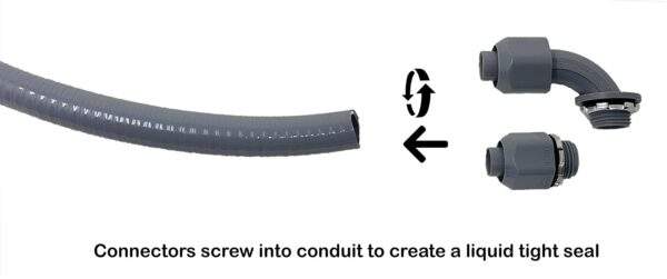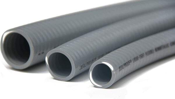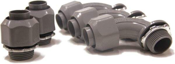 - À utiliser avec les connecteurs droits ou à angle droit Sealproof ; peut être utilisé avec n’importe quel connecteur de conduit métallique ou non métallique de type B. 50 % plus léger que les conduits métalliques, pas d’arêtes vives ni de bavures