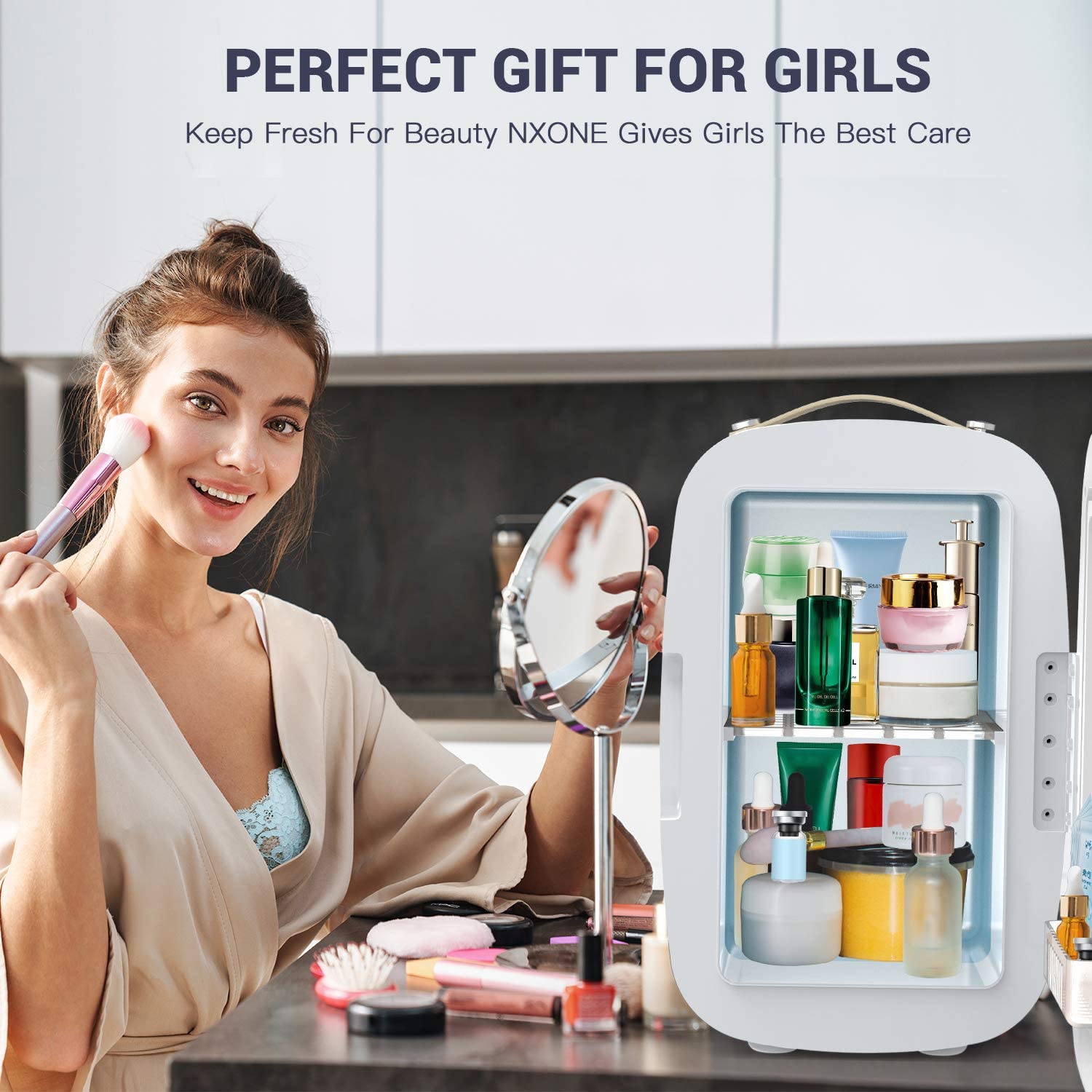 - Cadeau parfait pour les filles : le réfrigérateur de soins de la peau Nxone est une excellente solution pour conserver vos cosmétiques à une température fraîche afin d’améliorer leurs ingrédients actifs. Et la conception de l’étagère amovible permet de ranger facilement séparément les petits objets comme les masques, les parfums et les crèmes pour le visage. La petite taille et le design élégant rendent le mini-réfrigérateur parfait pour toutes les occasions. C’est le meilleur cadeau pour les femmes et les filles.