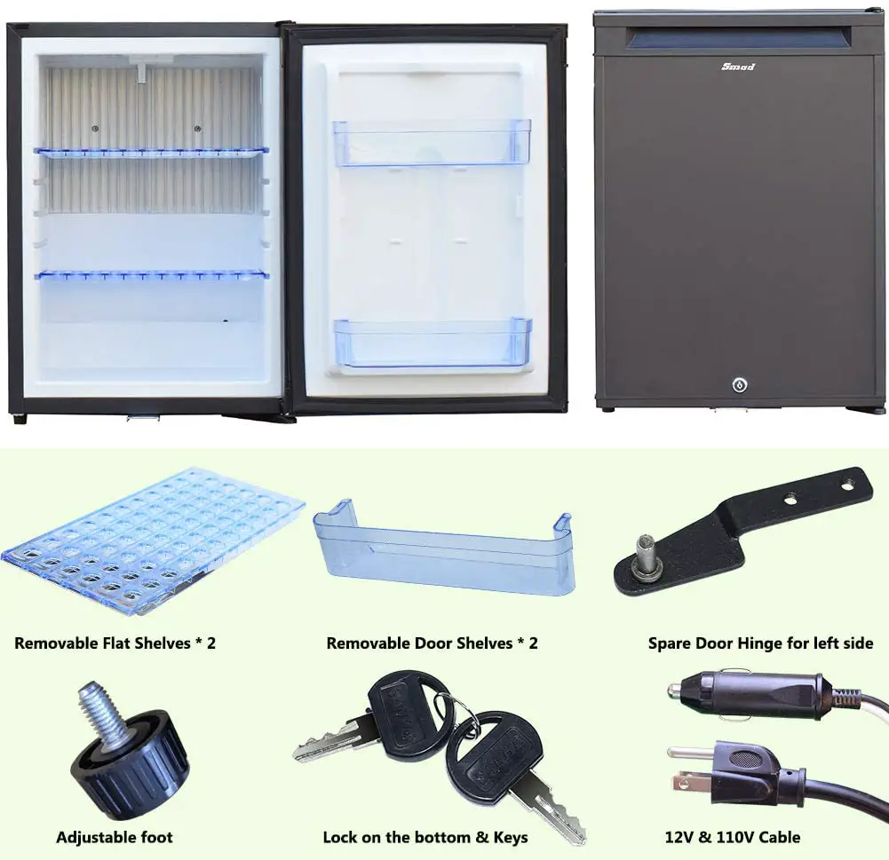 | Caractéristiques spéciales | Pas de bruit, parfait pour bibliothèque, hôpital, hôtel, chambre, dortoir étudiant, Compact, vous pouvez l'emporter où vous voulez, Réfrigérateur noir, facile à adapter à n'importe quel décor, Porte intérieure et extérieure, 12V et 110V disponibles, Porte réversible, adapté à différentes habitudes d'utilisation |